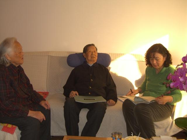 博物馆筹备组人员(右)在北京拜访抗战印新驮运队副领队、96岁的刘宗唐老校友(2007年2月4日)。